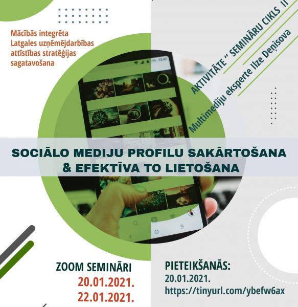 2021. gada 20. un 22. janvārī notiks attālinātā formāta seminārs "Sociālo mediju profilu sakārtošana & efektīva to lietošana".